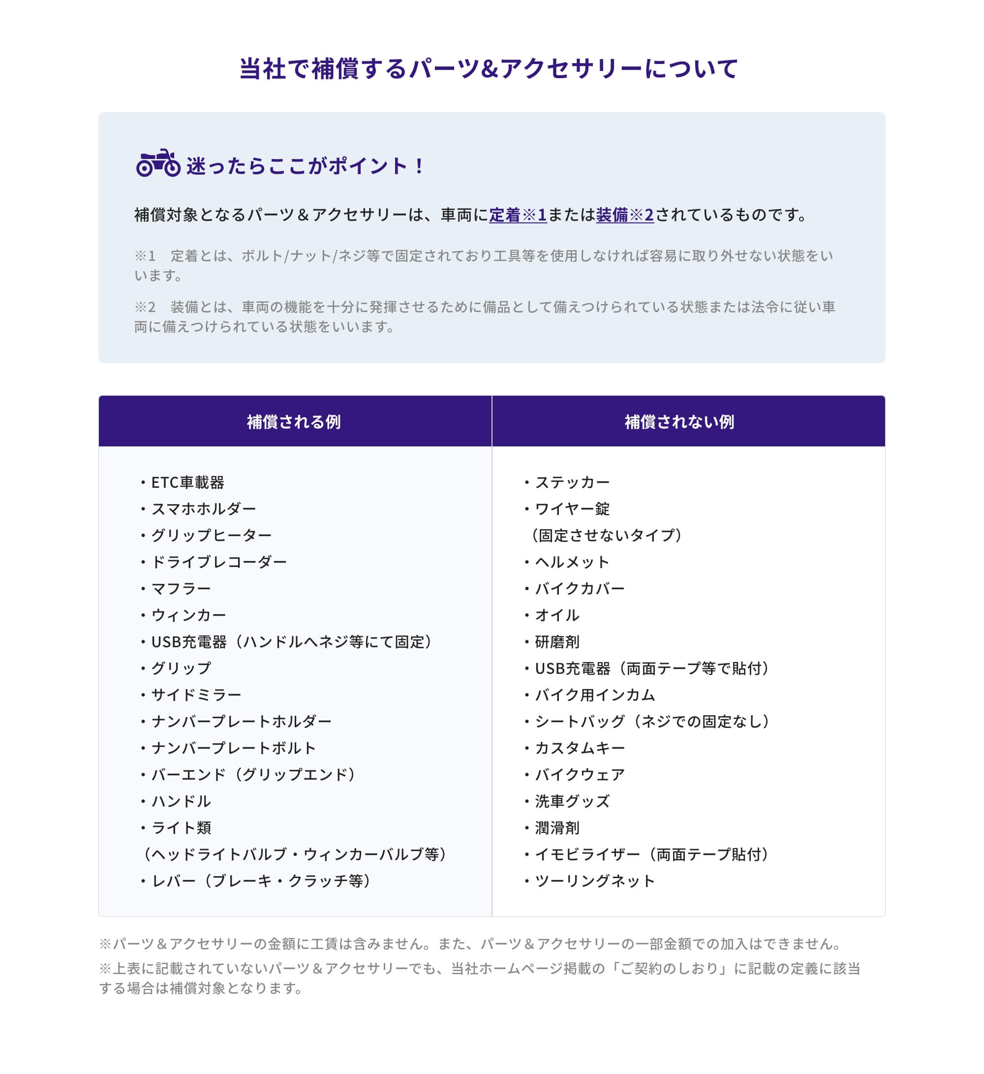 パーツ&アクセサリーは補償対象になりますか?